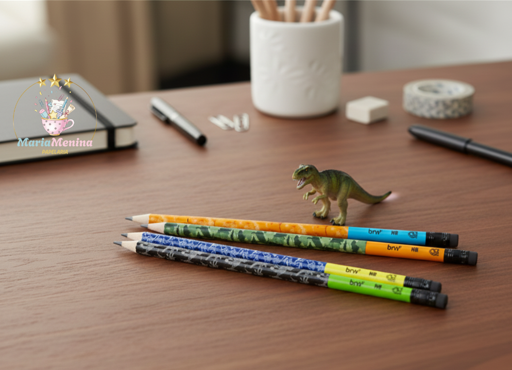 Grafite: HB (Hard Black/Hardness Black). Este é o padrão mais comum, oferecendo um equilíbrio entre ser macio o suficiente para uma escrita suave e firme o suficiente para evitar quebras fáceis. Ideal para escrita e desenho diário.